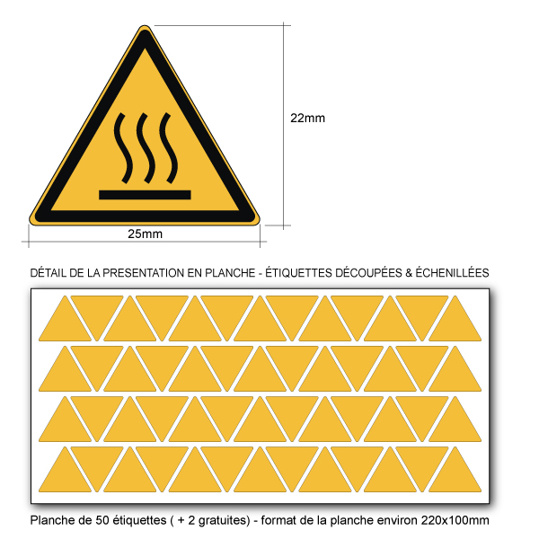 Étiquette pictogramme DANGER SURFACE CHAUDE conforme à la norme ISO 7010