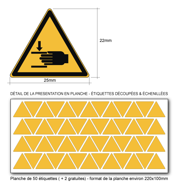 Étiquette pictogramme DANGER ÉCRASEMENT DES MAINS conforme à la norme ISO 7010